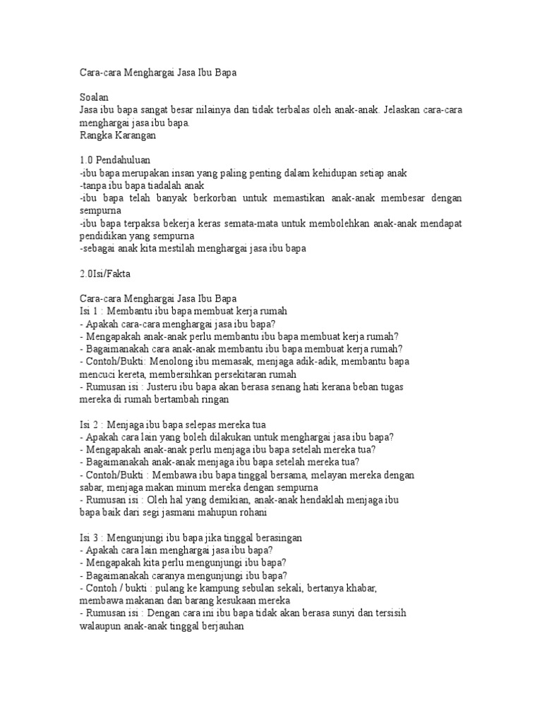 Karangan Spm Cara Cara Menghargai Jasa Ibu Bapa